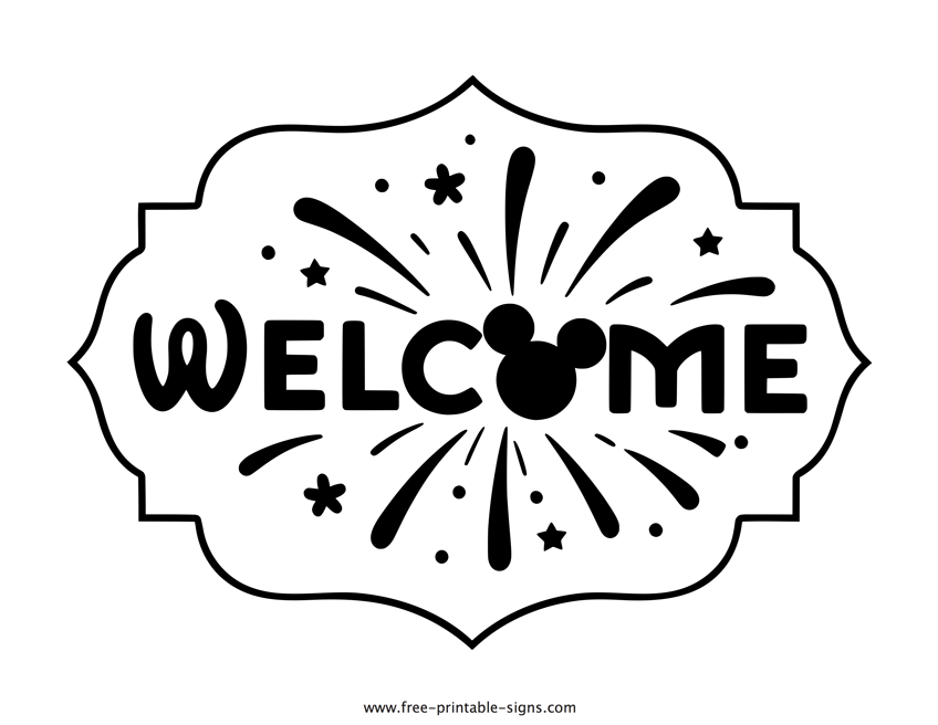 Fans of Mickey Mouse will like this Disney welcome sign with many elements related to it. If you have a room dedicated to Disney collectibles then this signs is a good choice to place on the door. The format of the file is PDF. Paper size: US Letter. Dimensions: 11 x 8.5 inches. Orientation: landscape, horizontal.